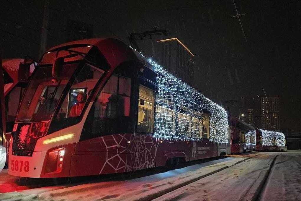 На улицы Перми вышли новогодние трамваи