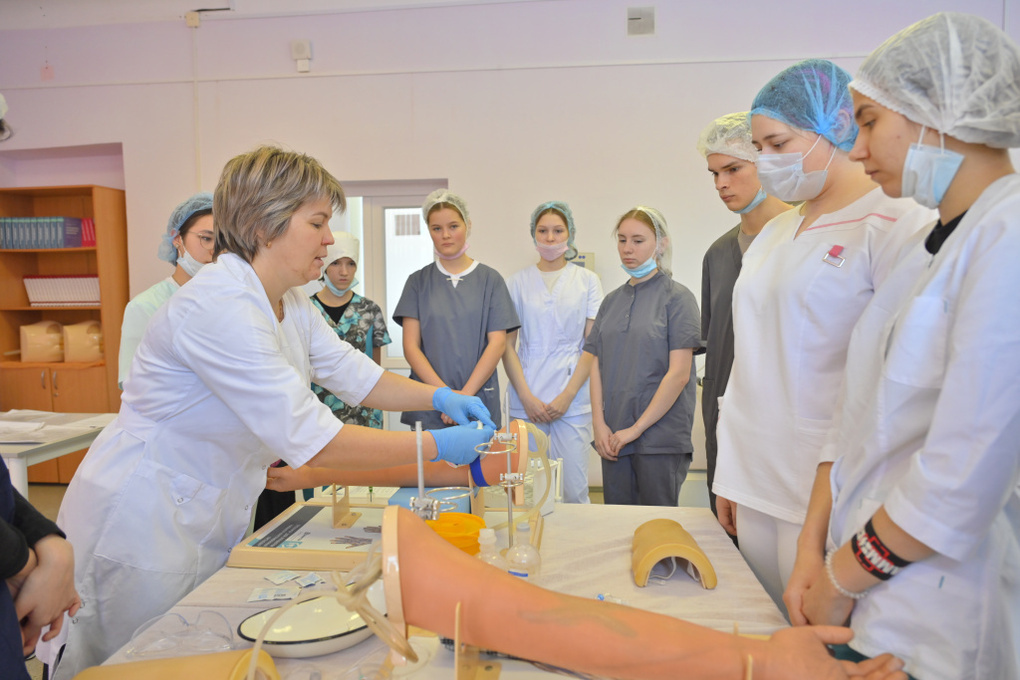 Сегодня в колледже обучаются более 430 человек, реализуются три образовательные программы: лечебное, акушерское и сестринское дело. В следующем году здесь откроют лабораторию по специальности «Стоматологическое дело».